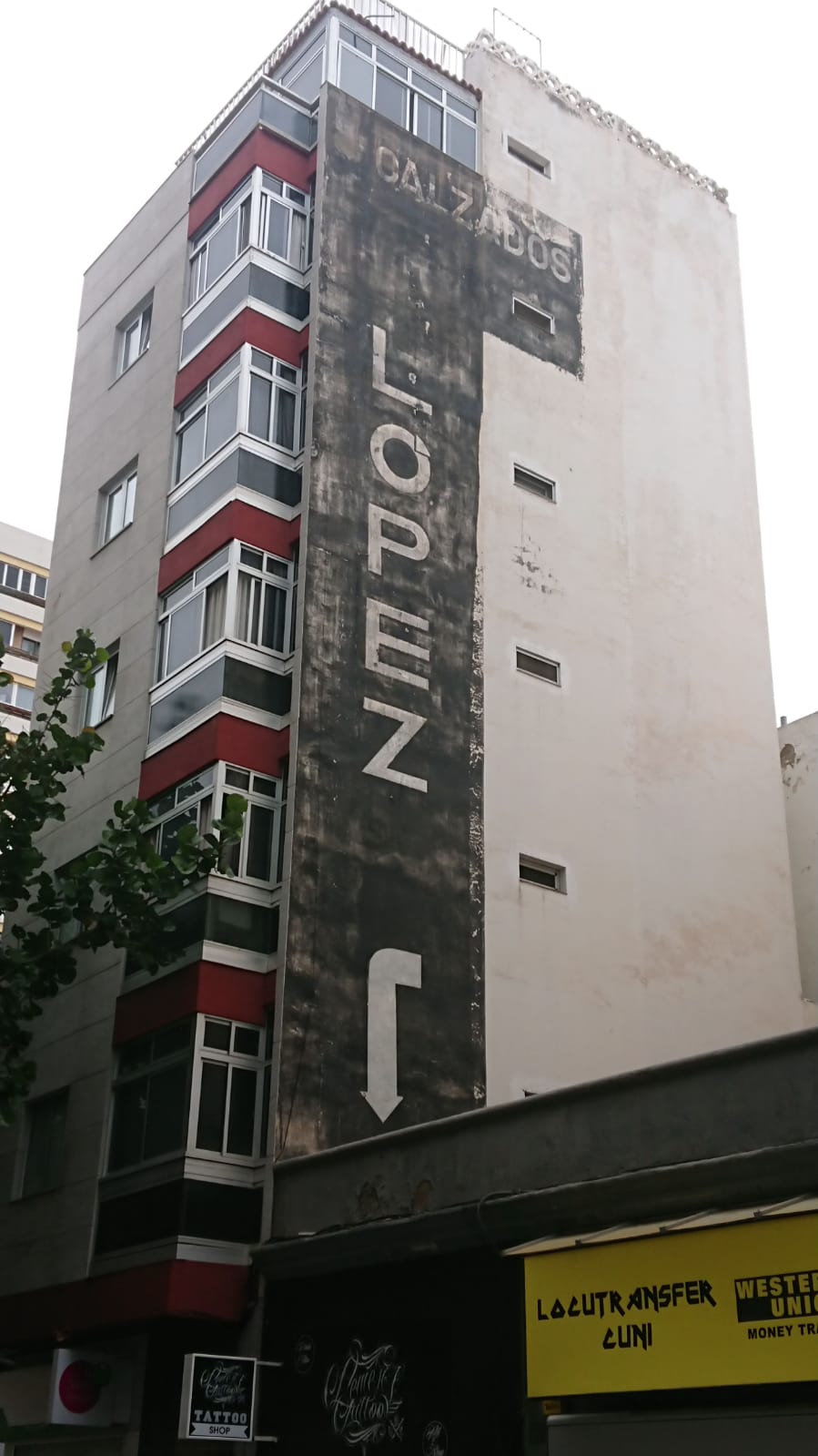 Calzados López estuvo situado en la calle Alfredo L. Jones de Las Palmas de Gran Canaria. Su enorme anuncio en la pared medianera del edificio sobrevivió al propio establecimiento. Calzados López es una firma integrada en un grupo de tiendas de complementos, moda y calzados repartidas por las islas. Con el nombre específico de Calzados López hay uno en la Avda. Mesa y López de la capital y otro en Puerto del Rosario, Fuerteventura. Hubo otro Calzados López en la calle General Vives, cuya esquina con Alfredo L. Jones es la que aparece en la fotografía, un par de manzanas a la derecha. Sigue siendo una zapatería que también forma parte del grupo, aunque con otro nombre.