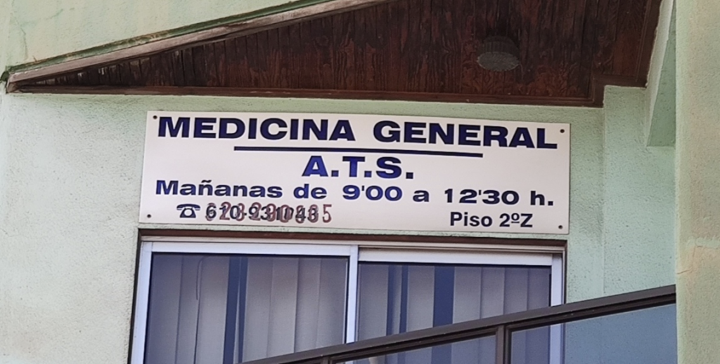 Este médico y su ATS quieren que pongas tu salud en sus manos, pero que vayas a la consulta directamente a verles. Nada de llamarles para hacer rico de royalties a Alexander Graham Bell. De otro modo no se explica la forma ininteligible en que está escrito el teléfono en el rótulo, del que también llama la atención ese «2º Z», porque no consigo recordar un rellano que tuviera tantas puertas como para agotar el abecedario. El horario, un tanto apretado, ya nos indica que las consultas no han de ser baratas, pues trabajando tres horas y media al día no se sostiene una consulta con dos profesionales sanitarios. Visto en la calle León y Castillo (Las Palmas de Gran Canaria).