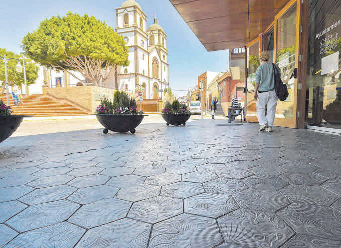 La colocación de estas baldosas hexagonales no fue fruto del azar o de la improvisación, sino que se incluyó en el proyecto paisajístico de mejora del entorno de la Iglesia de la Candelaria que dirigieron en 2001 las arquitectas María del Carmen Rubio y Gema Navarro, trabajando junto a un equipo de aparejadores y funcionarios, siendo en ese momento alcalde el socialista Juan Espino del Toro.
