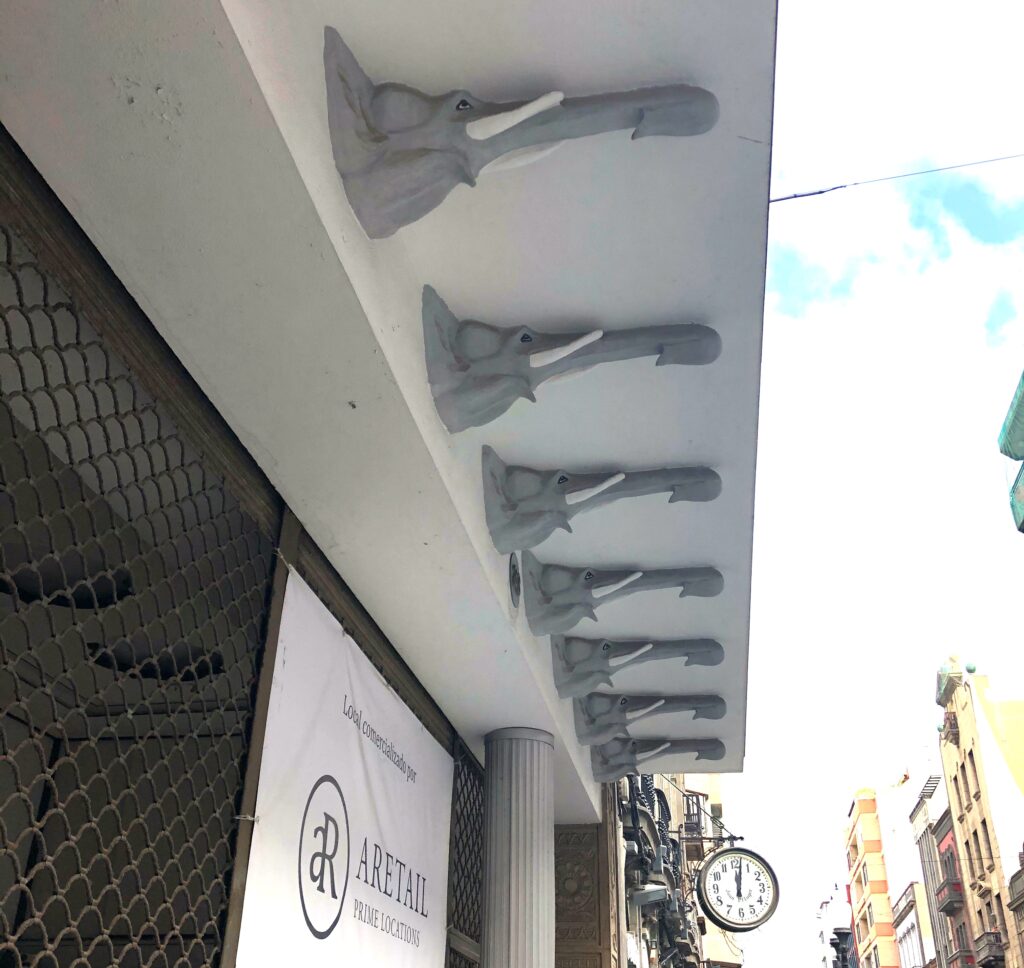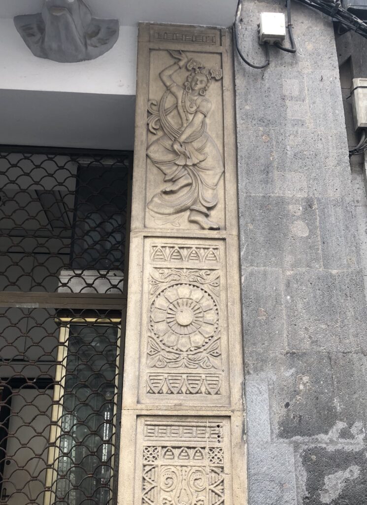 En 1956, el propietario D. G. D. Daryani encargó la decoración de la fachada de su negocio al célebre arquitecto José Enrique Marrero Regalado, que solicitó para ello la colaboración de Felo Monzón, para entonces una figura consagrada en el Archipiélago. Ocho ménsulas en forma de cabeza de elefante con la trompa extendida configuran parte de dicha decoración, además del revestimiento de las pilastras laterales en piedra artificial en el tono de la piedra berroqueña, representando figuras de dioses de danzas sagradas las superiores y ornamentaciones geométricas de influencia oriental las inferiores.