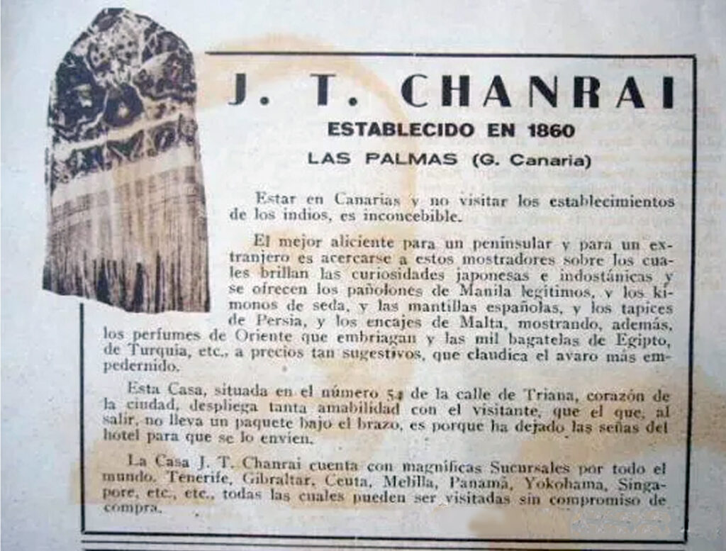 En los años veinte y treinta, las llamadas 3C (Chanrai, Choitram y Chellaram), ya estaban presentes en el núcleo del comercio tradicional de la capital tinerfeña (la calle Alfonso XIII –actual Castillo– y la plaza de la Constitución – actual de la Candelaria–), así como en la calle Triana de las Palmas de Gran Canaria. En esa misma calle, Thakurd Basulchand abrió en 1935 la firma Flor de India.