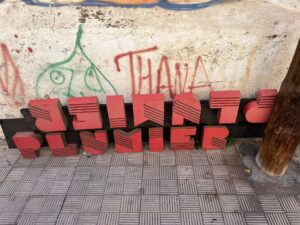 La recuperación de esta histórica pieza ha sido posible gracias a la labor de investigación, protección y recuperación del patrimonio gráfico canario que venimos realizando desde hace años. Tras ser detectado y analizado, se activó el operativo necesario para llevar a cabo un “rescate” con todas las garantías. El cartel está situado en la pared de un pozo en el Cruce de Arinaga, en unos terrenos propiedad de la empresa de Juliano Bonny, que una vez contactados, mostraron su disposición a una plena colaboración, facilitándonos todos los permisos y apoyos logísticos solicitados. A este apoyo hay que sumar el de simpatizantes anónimos que prestaron su trabajo, tiempo y dinero para ejecutar los trabajos necesarios. Actitud que contrasta, lamentablemente, con la desidia y desinterés que las administraciones públicas muestran habitualmente hacia este tipo de patrimonio cultural. Así, todas las gestiones y todos los gastos para financiar esta recuperación (permisos, alquiler de maquinaria, herramientas, productos, etc.) han sido asumidos por INSULA SIGNA, tras ser ignoradas nuestras solicitudes de ayuda al Ayuntamiento de Agüimes y a otras instancias públicas. El importe de esta operación, que para cualquier institución resultaría pura calderilla, supone para nosotros una pequeña fortuna proveniente de la pequeña cuota que abonan nuestros socios/as y de la campaña de venta de camisetas con el famoso cartel que pusimos en marcha para recaudar los fondos necesarios.