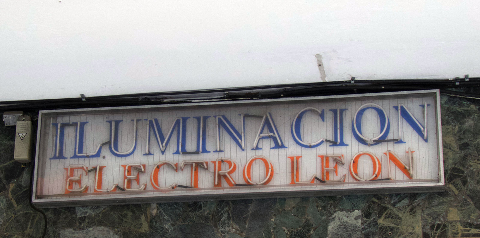 El negocio Iluminación Electro León pasó a ocupar el local adyacente, en el 114 del Pº de Tomás Morales. El edificio correspondiente al nº 112 fue demolido hace unos años y su rótulo de neón, confeccionado hacia 1985 para sustituir a otro anterior pintado a mano, fue trasladado al nuevo local, que ya contaba con otros dos luminosos con el logotipo actualizado por el polifacético artista Francisco Lezcano, vecino y amigo de la familia.